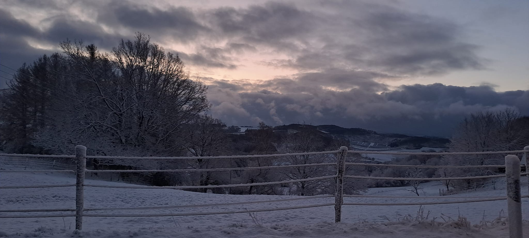 Bei uns ist es so richtig Winter. Tage mit ordentlich Schnee, dann taut es wieder um neu zu frieren. Heute morgen war unser Paddock stellenweise spiegelglatt, daher haben wir kurzentschlossen die Wiese offen gemacht. Dort können die Jungs deutlich besser laufen und genießen es endlich mal wieder richtig toben und rennen zu können.