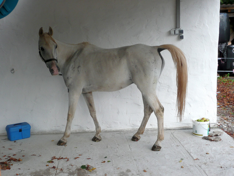 Luna´s ehemalige Besitzer haben sich gemeldet und zeigten sich angesichts ihres Zustandes als sie bei uns eingestellt wurde geschockt. Luna heißt eigentlich "Märy" und ist 18 Jahre alt. Sie soll eine Heustauballergie haben, allerdings hat sie bei uns noch nicht einmal gehustet. Das kleine Pony ist eine richtige Kämpfernatur. Nach einer weiteren Untersuchung des Tierarztes darf Märy wieder mit den anderen stündlich die Graskoppel genießen.