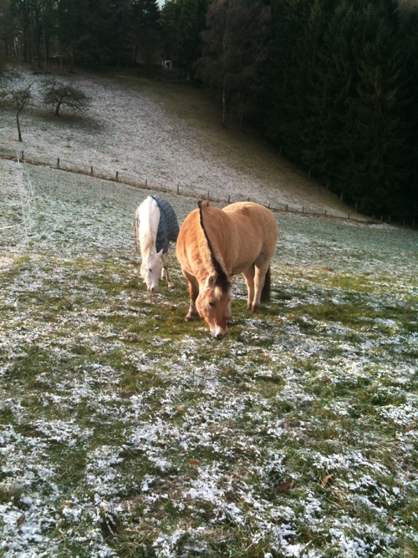 Luna ist erstmal über den Berg. Sie läuft trotz ihrer chronischen Rehe erstaunlich gut. Der Reheschub scheint zur Zeit zum Stillstand gekommen zu sein. Unser Neuzugang vom 01.11.09 hat sich gut in die Herde integriert.
