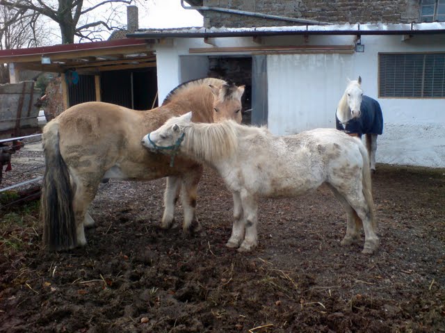 Luna ist erstmal über den Berg. Sie läuft trotz ihrer chronischen Rehe erstaunlich gut. Der Reheschub scheint zur Zeit zum Stillstand gekommen zu sein. Unser Neuzugang vom 01.11.09 hat sich gut in die Herde integriert.