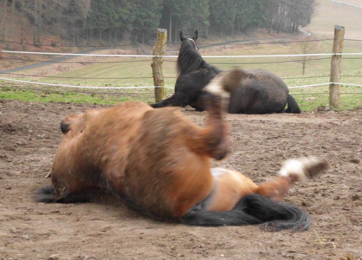 Pferd Nummer 7, der 21-jährige Westfalenwallach "Picasso" ist nun auch Mitglied in unserer Männer-WG. Keine 5 Minuten im Paddock und schon spielte er mit seinem neuen Kumpel Mr. Tiv und wälzte sich ausgiebig! Er verstand sich mit allen Pferden auf Anhieb prächtig und fühlt sich dem Anschein nach schon ausgesprochen wohl in seinem neuen Zuhause!