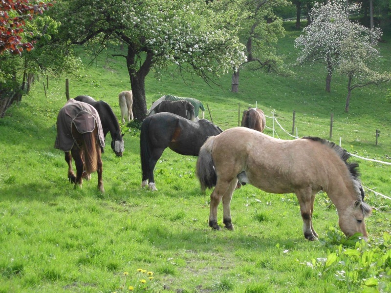 Heute sind zwei neue Pferde bei uns eingezogen. Nach kurzem Begrüßungsschnuppern zog sich die Herde zurück auf die Wiese.