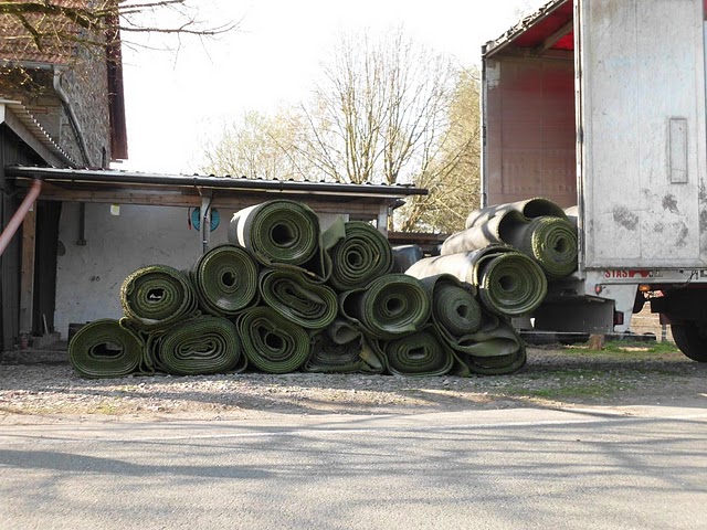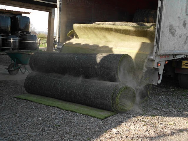 Heute ist der Kunstrasen für die Paddockbefestigung geliefert worden. Jetzt warten wir noch darauf das die Pferde endlich ausgeweidet werden können, damit die Umbaumaßnahme starten kann.