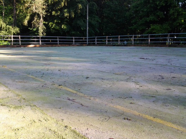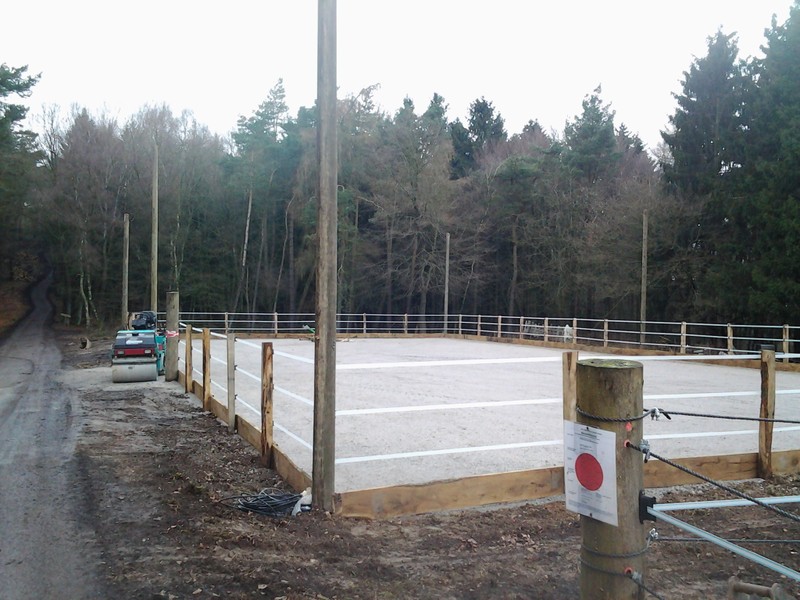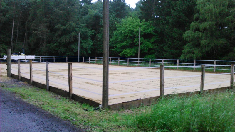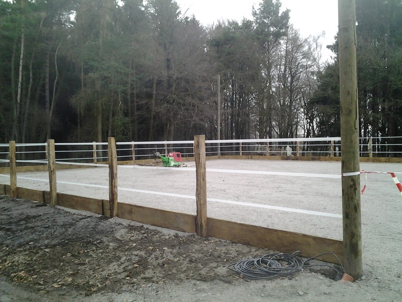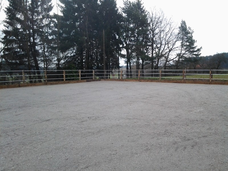 Unser Reitplatz ist fertig! Die Beleuchtung fehlt zwar noch, aber wir können schonmal die Pferde darauf bewegen. :)