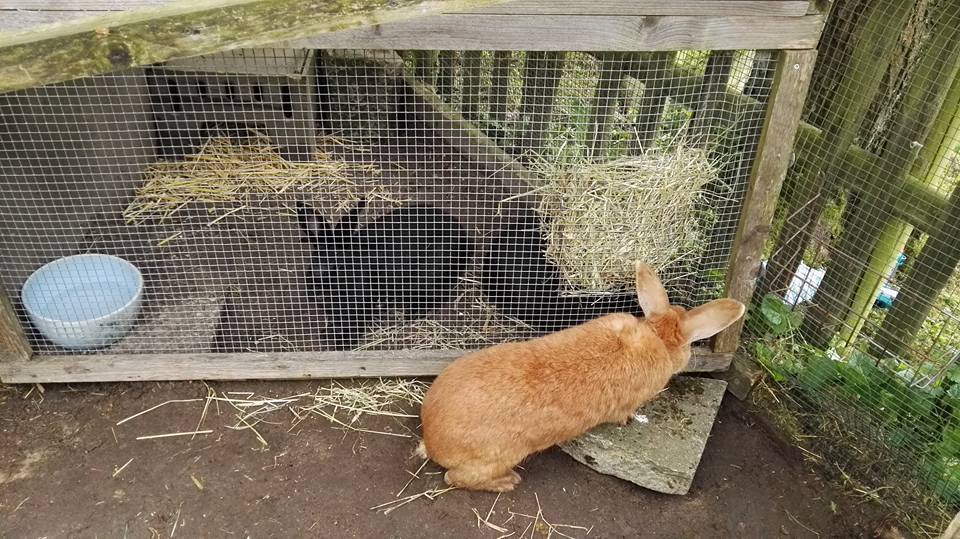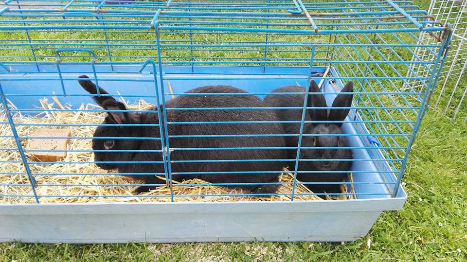 Emmi und Lotti sind eingezogen. Lotti ist Emmis Mama. Die beiden stammen aus einer Kaninchenzucht, die aufgelöst wird. Die beiden “Neuen“ wurden erstmal neugierig beäugt und beschnuppert.