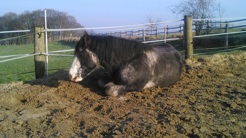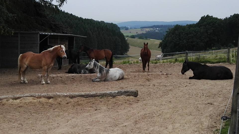Endlich mal wieder Sonne nach dem tagelangen Grau in Grau und dem ständigen Regen und Schnee. Die Pferde genießen es sichtlich. Es wird gemeinschaftlich entspannt.