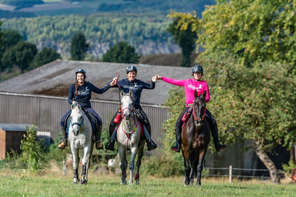 Jana konnte sich endlich ihren lange ersehnten Wunsch erfüllen und mit Tornado im Herbst an seinem ersten Distanzritt teilnehmen. Ganz souverän trabten die beiden nach 33 km in Begleitung von Sarah und Jessi ins Ziel!
