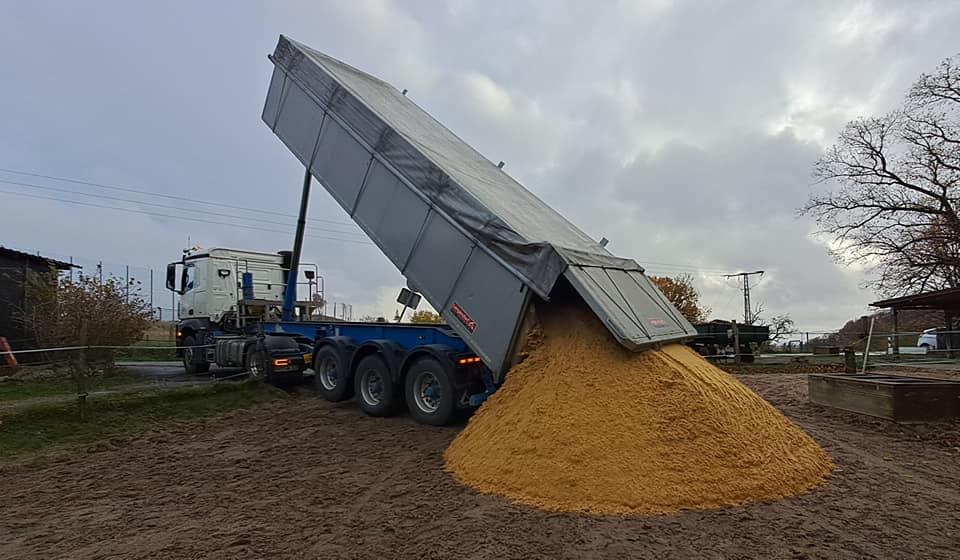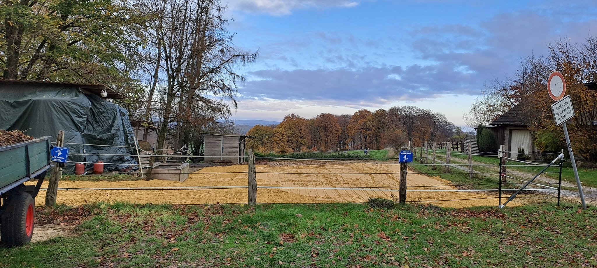 Heute haben wir neuen Sand für unseren Winterauslauf bekommen. Damit sind nun alle Vorbereitungen für die anstehende Wintersaison abgeschlossen. Aber noch steht die Herde trotz kurzem Wintereinbruch am Wochenende auf den Wiesen mit Zugang zum Stall und Raufutter.