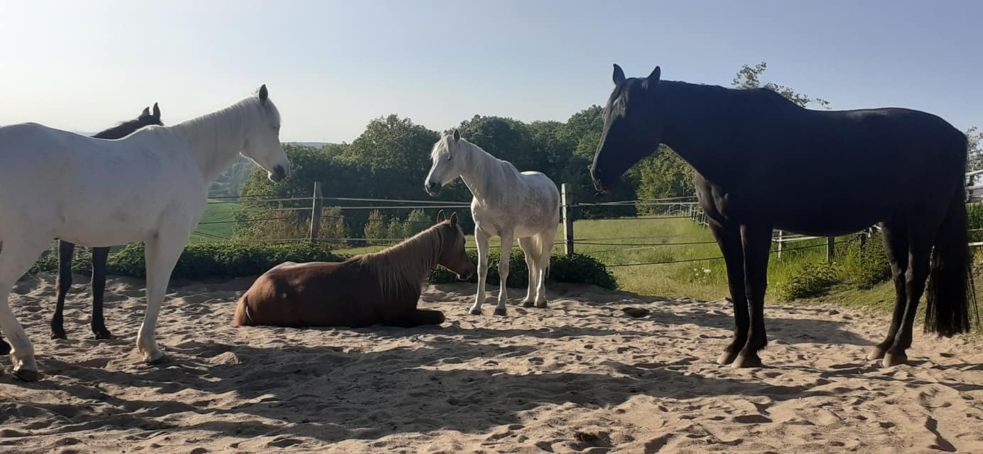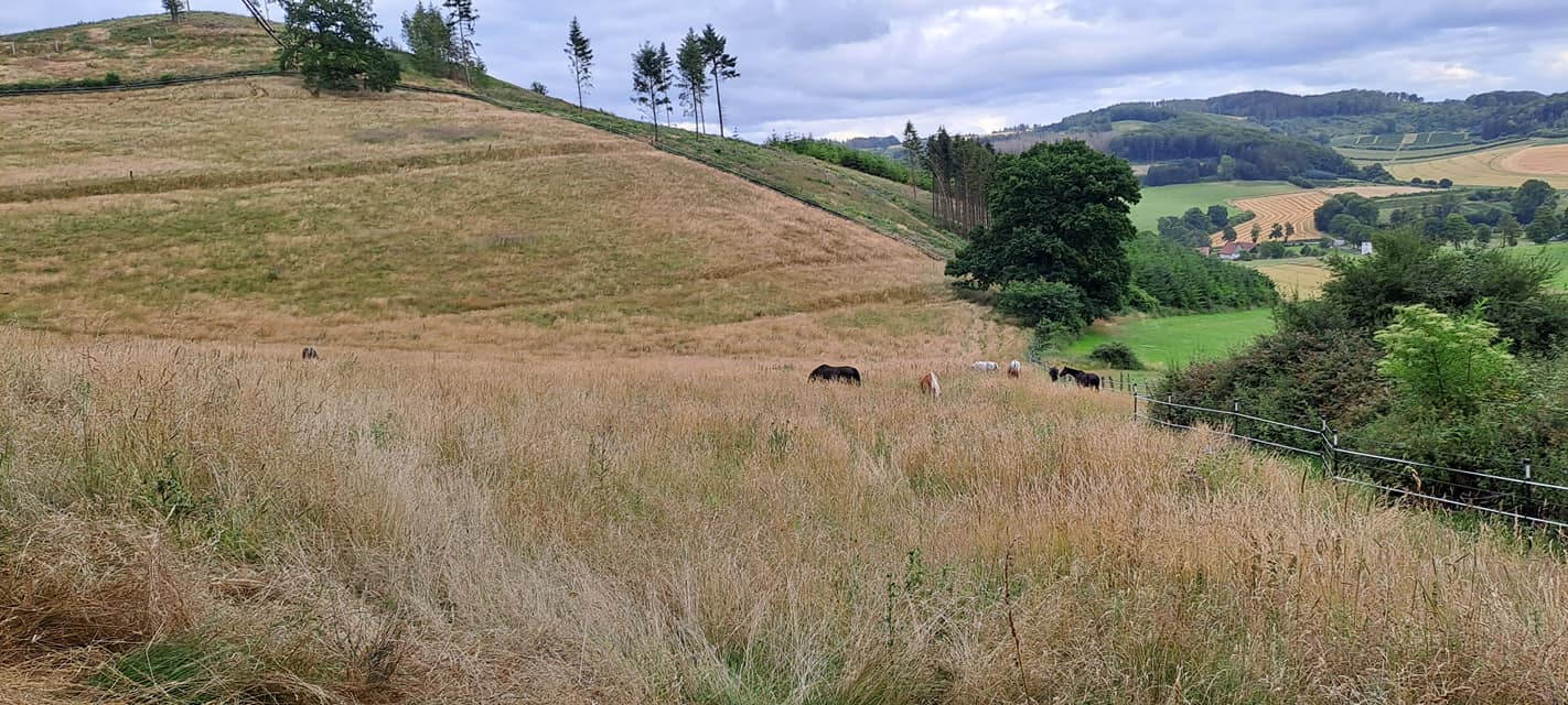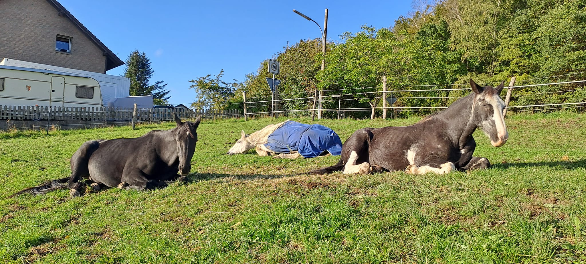 Seit dieser Woche ist unsere kleine Herde auf die neue Sommerwiese umgezogen. Hier können Sie sich jetzt bis in den späten Herbst auf ca. 3,5 ha die Füße vertreten, Wettrennen machen und natürlich chillen. Ein