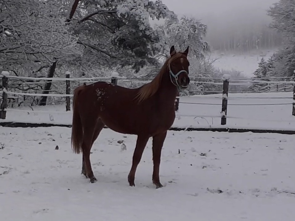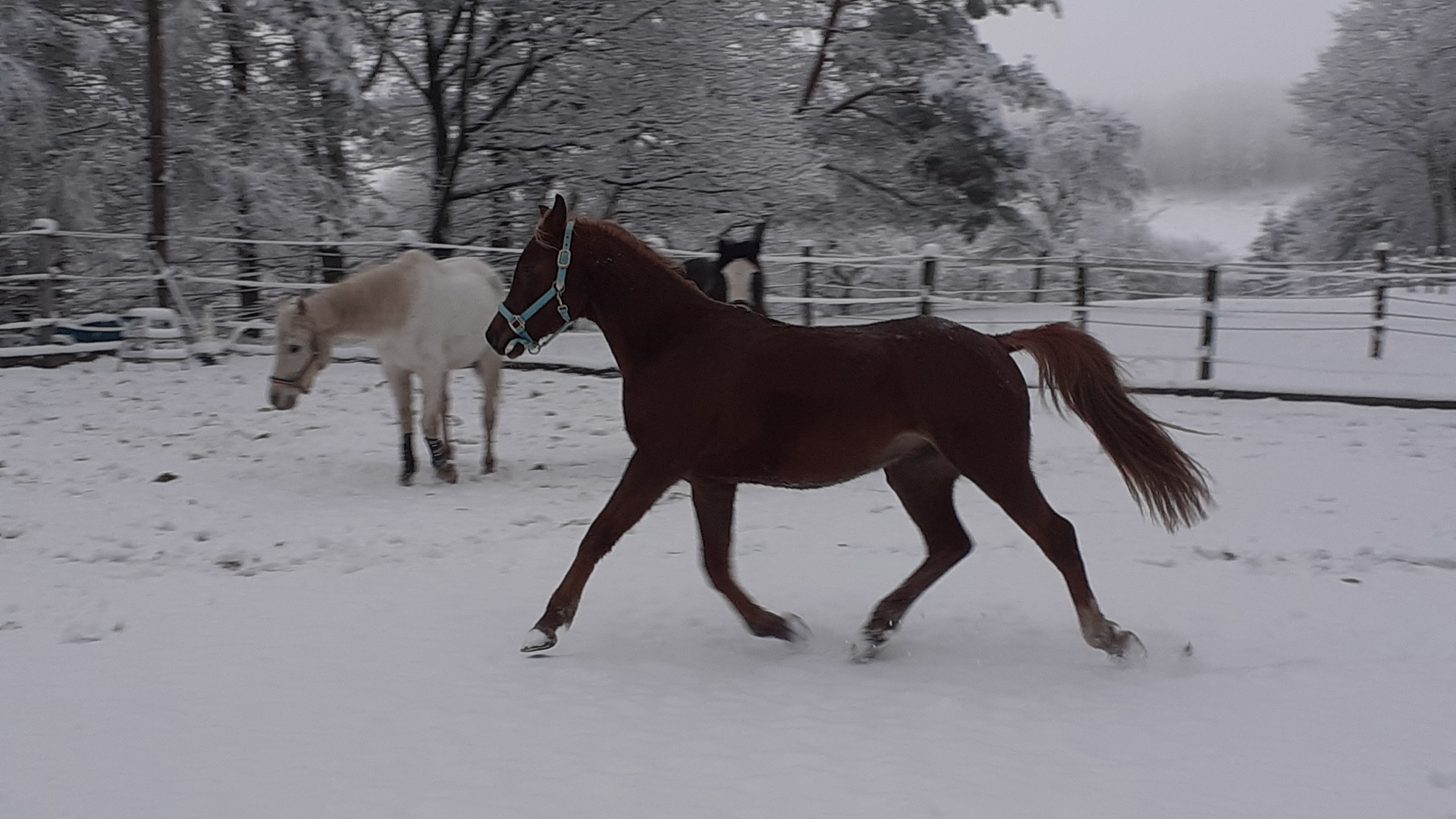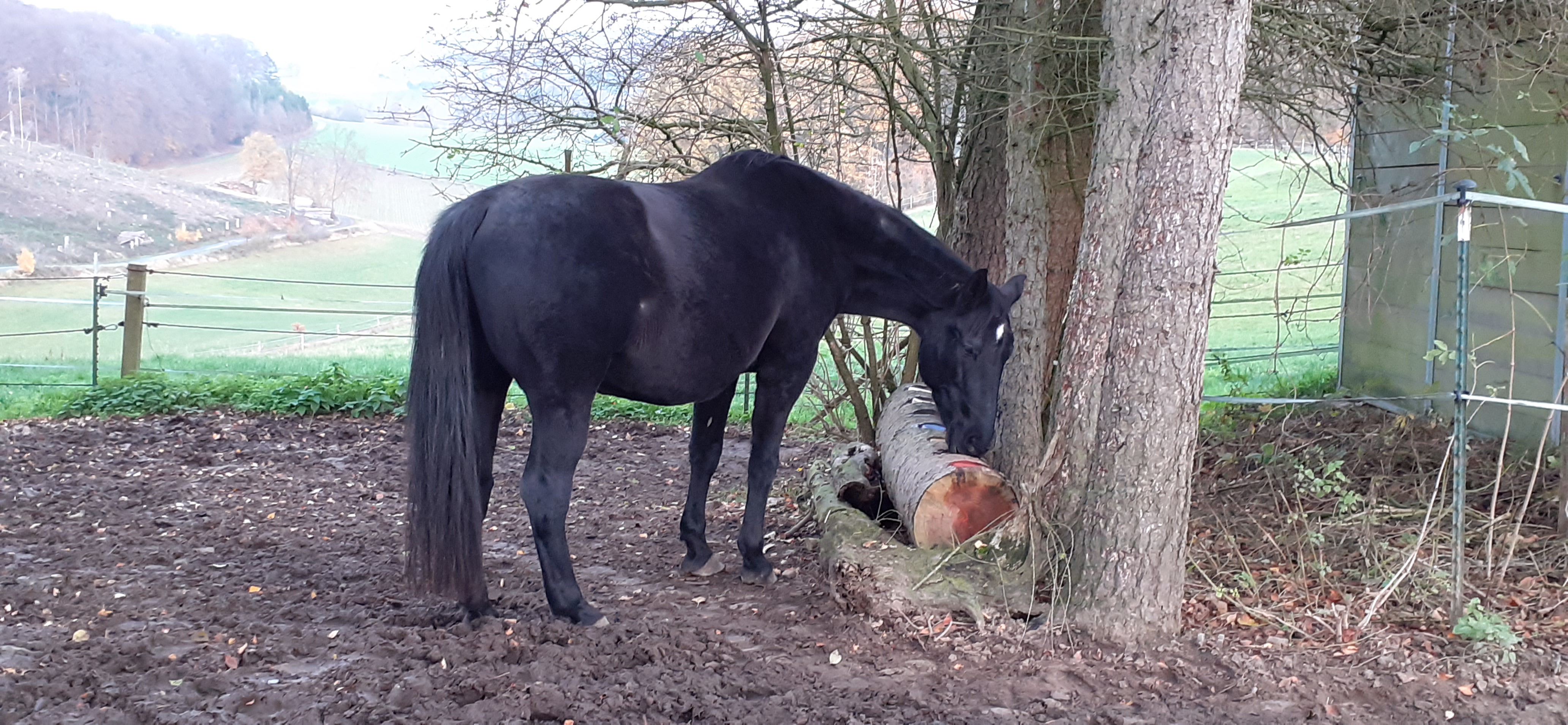 Jackson ist ein sehr senibler Traber. Dem Menschen gegenüber sehr skeptisch, innerhalb der Herde allerdings sehr bestimmend fügte er sich von Anfang an super gut in die Herde ein. Am liebsten spielt er mit dem Herdenchef Paul und dem Ball oder mit Midar.