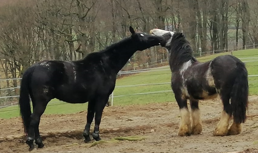Paul zog ein, sah und siegte... oder so in etwa. Es war direkt klar: Paul beansprucht einen sehr ranghohen Platz und nahm diesen auch ein, ohne das Hufe oder Zähne flogen. So schüchtern und nett er sich dem  Menschen gegenüber zeigt, so bestimmend ist er innerhalb der Herde. Paul nahm direkt am ersten Tag Stall, Weidehütte und Heunetze ein. Es macht den Eindruck als wäre er schon immer hier gewesen.