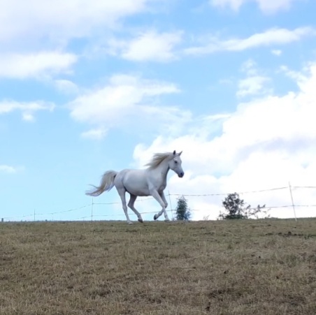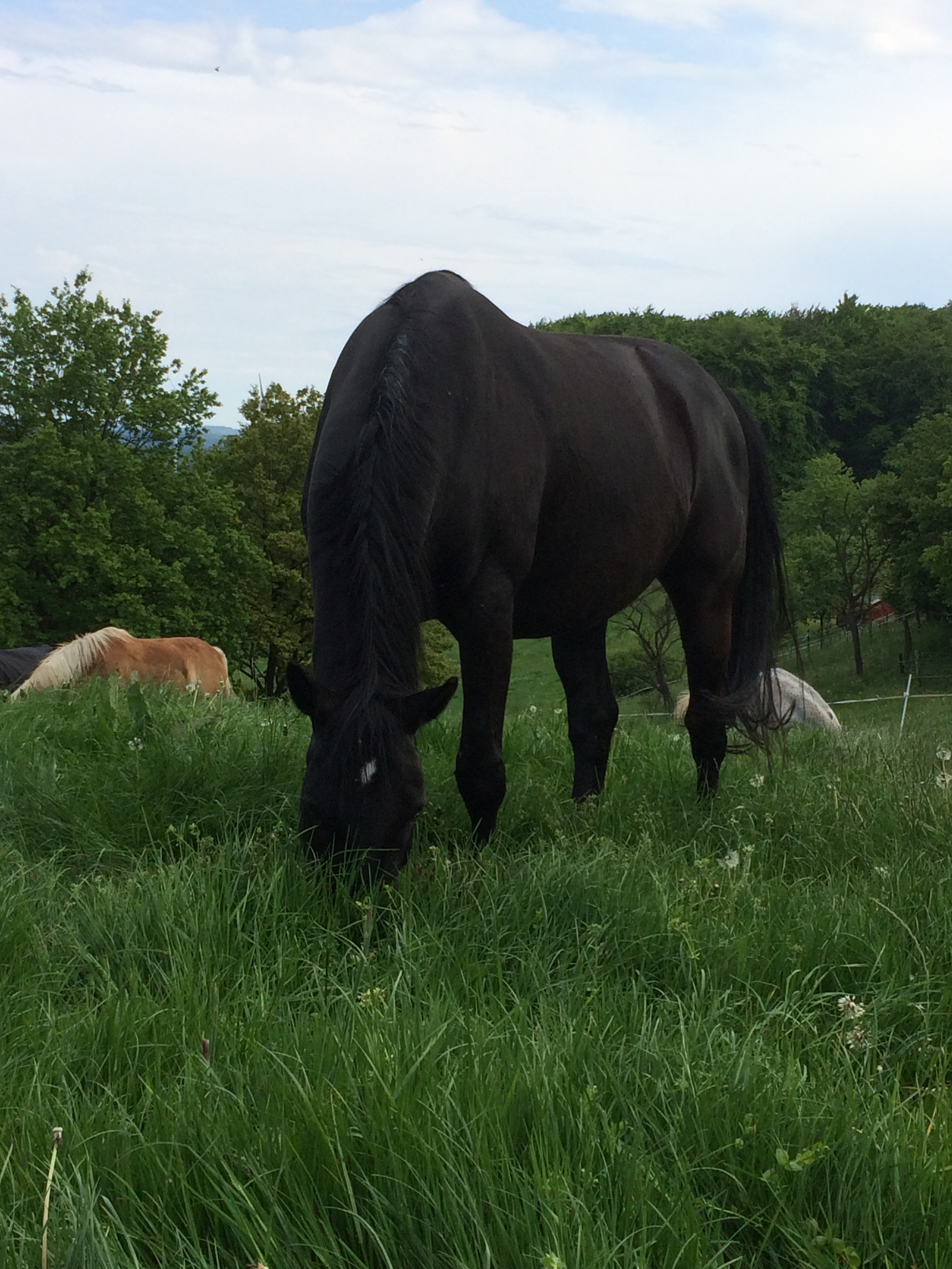 Jackson ist ein sehr senibler Traber. Dem Menschen gegenüber sehr skeptisch, innerhalb der Herde allerdings sehr bestimmend fügte er sich von Anfang an super gut in die Herde ein. Am liebsten spielt er mit dem Herdenchef Paul und dem Ball oder mit Midar.