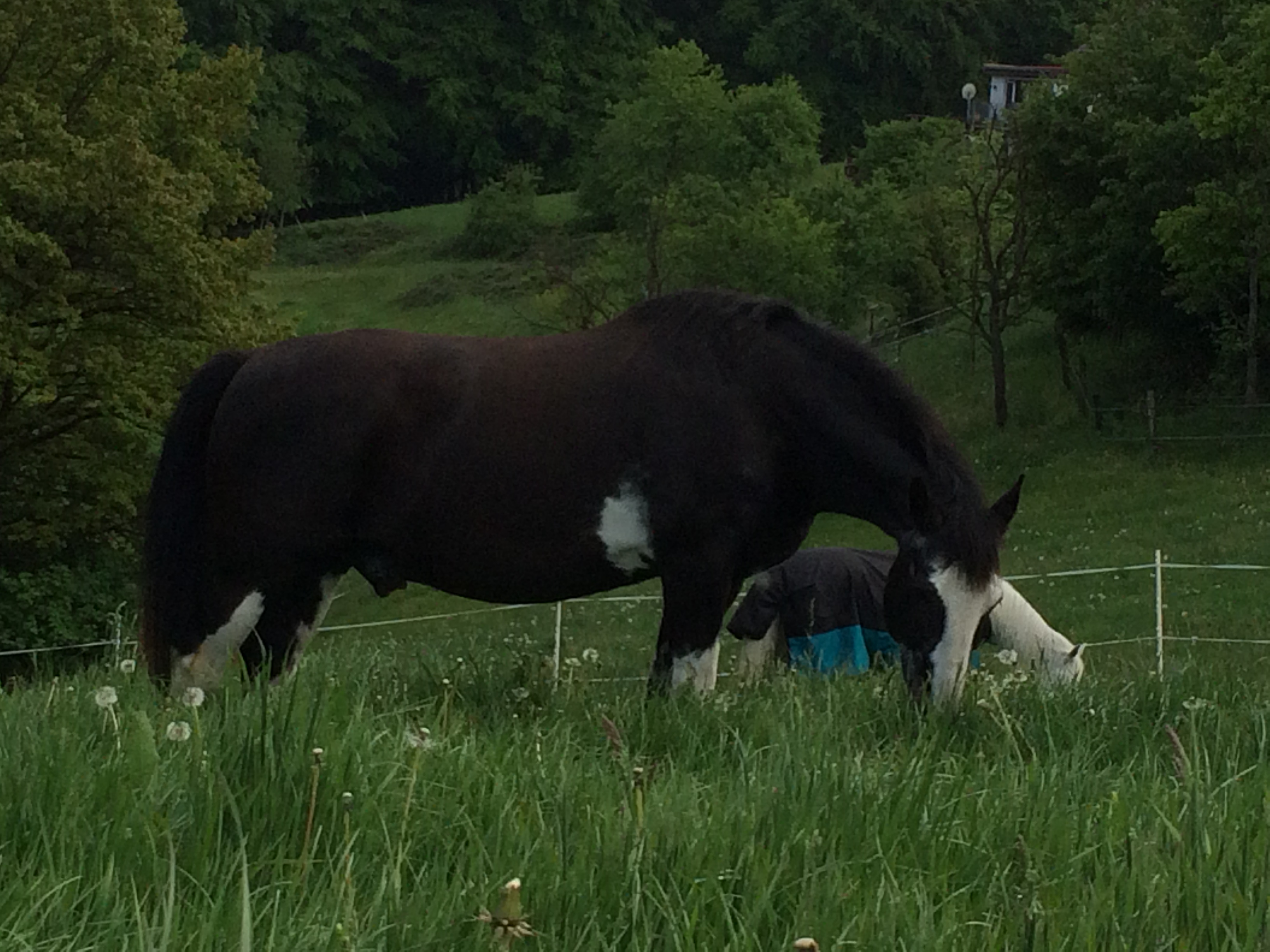 Paul zog ein, sah und siegte... oder so in etwa. Es war direkt klar: Paul beansprucht einen sehr ranghohen Platz und nahm diesen auch ein, ohne das Hufe oder Zähne flogen. So schüchtern und nett er sich dem  Menschen gegenüber zeigt, so bestimmend ist er innerhalb der Herde. Paul nahm direkt am ersten Tag Stall, Weidehütte und Heunetze ein. Es macht den Eindruck als wäre er schon immer hier gewesen.